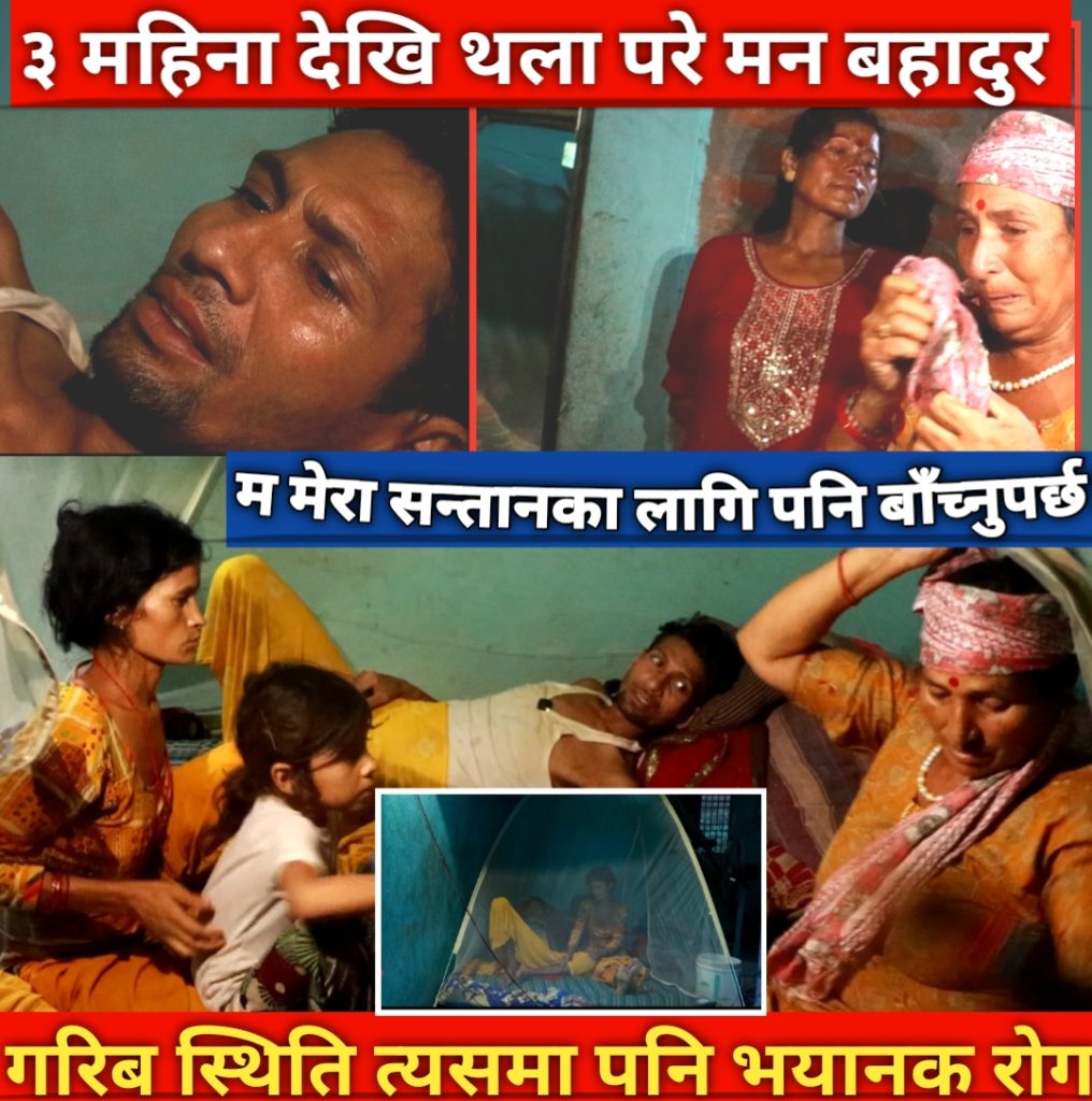 दाङ, तुलसीपुर – तुलसीपुर उपमहानगरपालिका–११ निवासी ३५ वर्षीय मनबहादुर डाँगी अहिले क्यान्सर रोगका कारण तीन महिनादेखि घरमै ओछ्यानमा थला परेका छन्। आर्थिक अवस्था कमजोर भएकाले उपचारमा कठिनाइ भइरहेको परिवारले जनाएको छ।